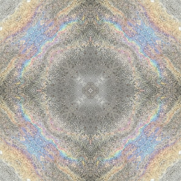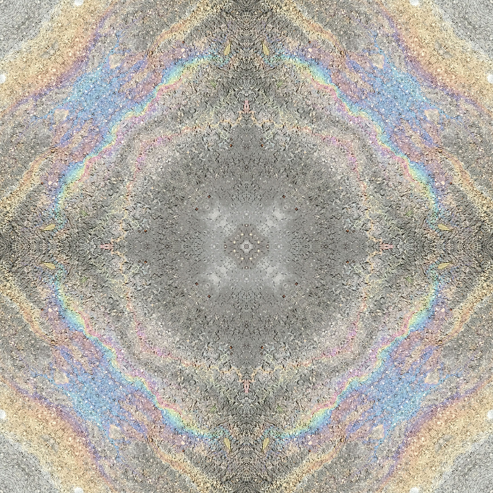 Below is the original photo used to create this image. All I can say, is sometimes you have to look down to see a rainbow.. I caught this oil-slick rainbow at dusk after a rain just outside my office building with no special lighting or retouching, just a snap from my smart phone.