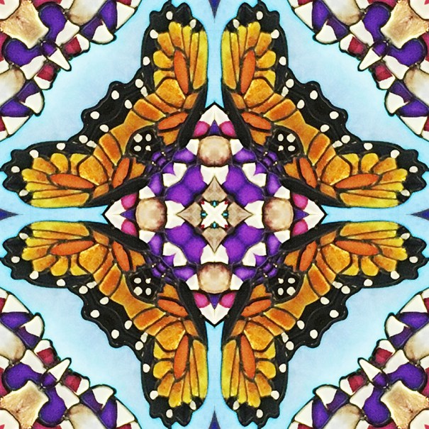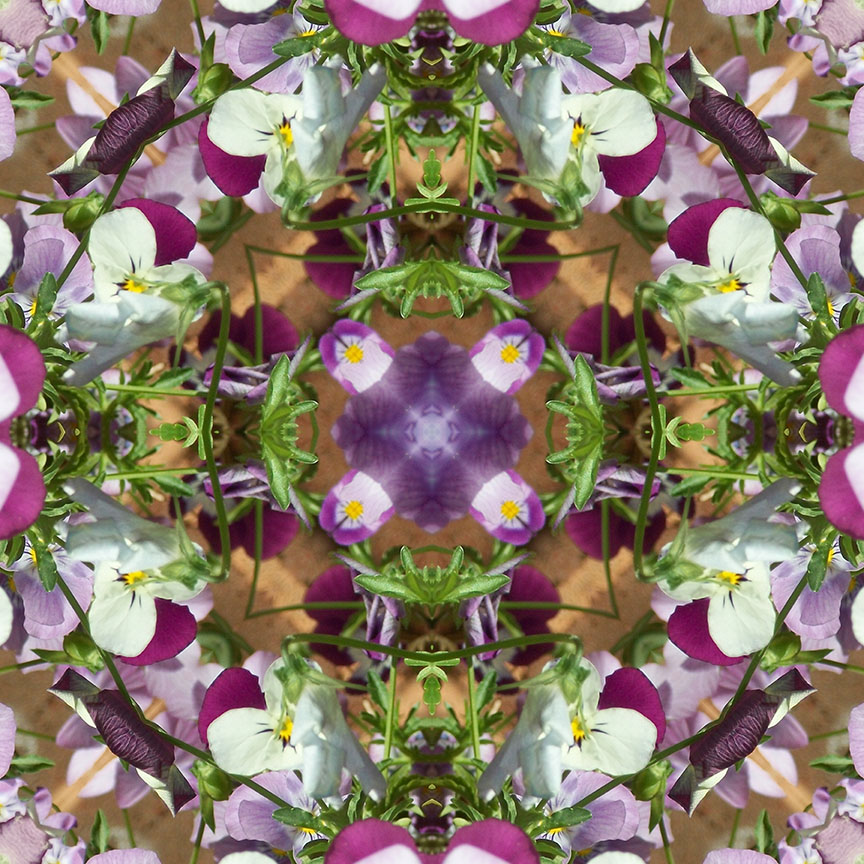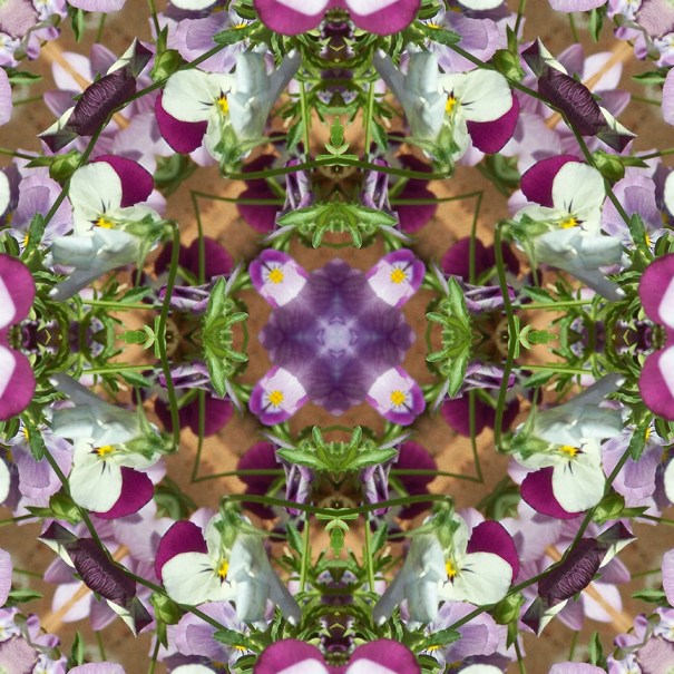 Below is the original photo used to create this image. I found this container of pansies on a lunchtime walk around downtown Richmond, VA. No special lighting or retouching, just a snap from my Kodak Share digital camera. And it’s even a little blurry…